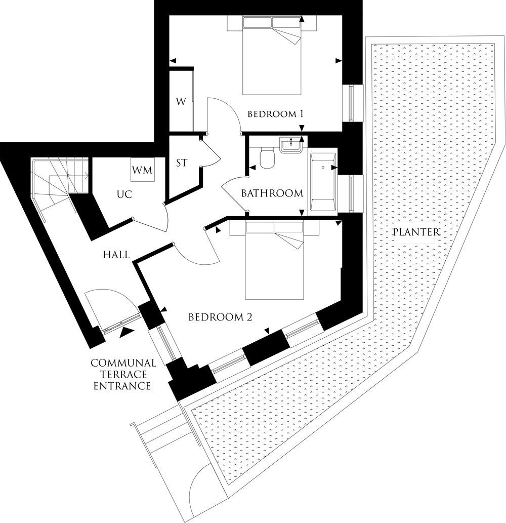 The Clew is a contemporary 2 bedroom duplex apartment available on the ground floor of Wayfare House at Blackwall Reach.