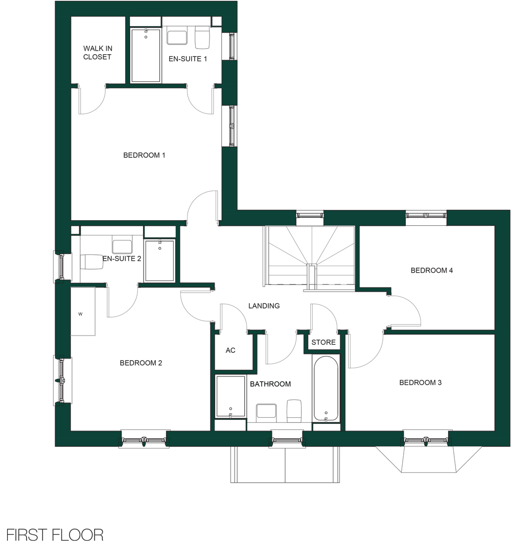The Kempsford is a beautiful four-bedroom home, uniquely designed for family living. On the ground floor is a conveniently placed WC off the entrance hall, plus a storage cupboard. From the hall you access the spacious living room with a front-facing bay window, plus double doors leading to the rear garden. To the back left of the property, there is a stunning kitchen/dining room with a large island, plus a utility.